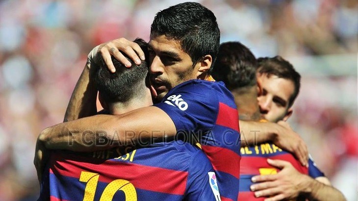 Otra vez, Luis Suárez fue el encargado de los goles. A los 21 minutos hizo el primero, con una extraordinaria jugada de Jordi Alba. Sólo tuvo que empujarla y salir a compartir la alegría con sus compañeros.